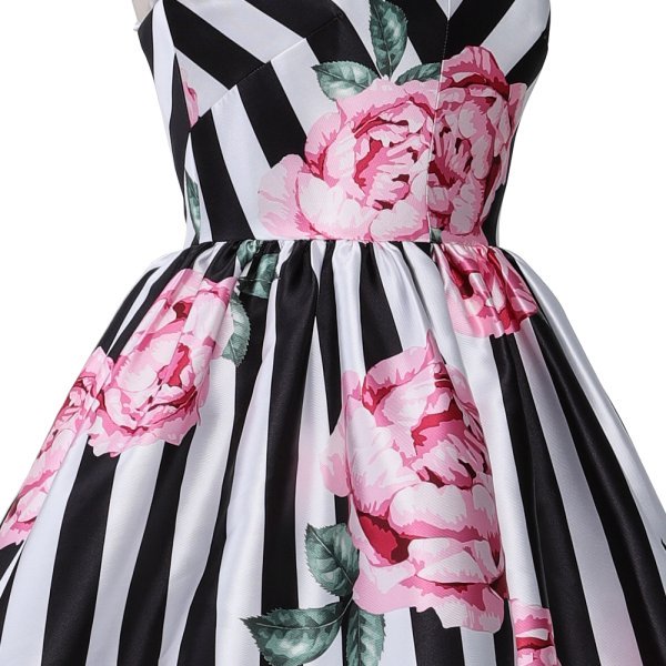 Black Striped and Printed Satin Fabric Strapless Prom Dress FN101020